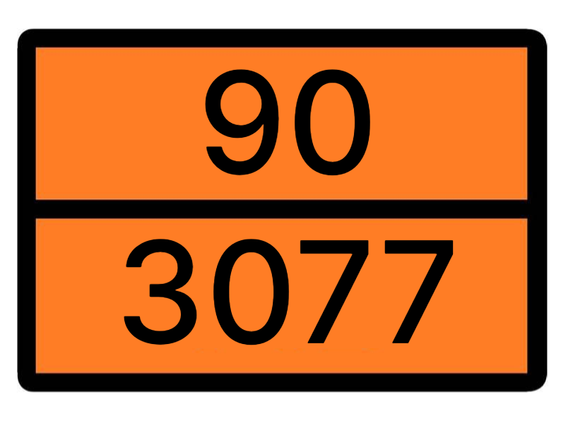 **Табличка 90-3077 (ТБО).** Оранжевая светоотражающая. Для перевозки опасных твёрдых отходов (9 класс). Код 90 — опасность для среды, 3077 — код ООН для таких отходов. Крепится на мусоровозы, контейнеры. По ДОПОГ обязательно.
